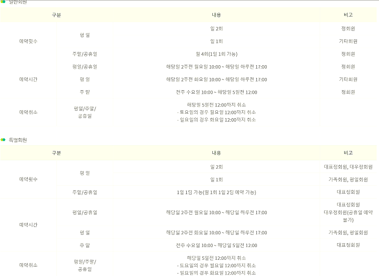 정회원 및 지정회원 동반자 할인(주중4회,주말2회 가능)