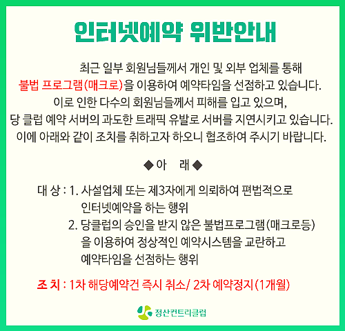 명문클럽인 정산cc도 불법적인 매크로로 인하여