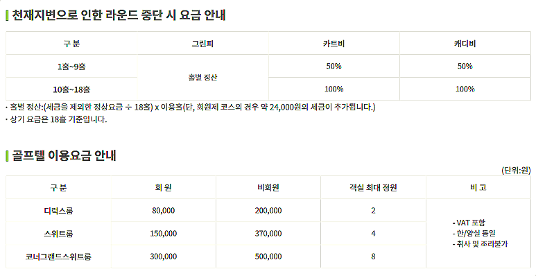 지정회원 주중 21,120원/주말 비회원 그린피 50%