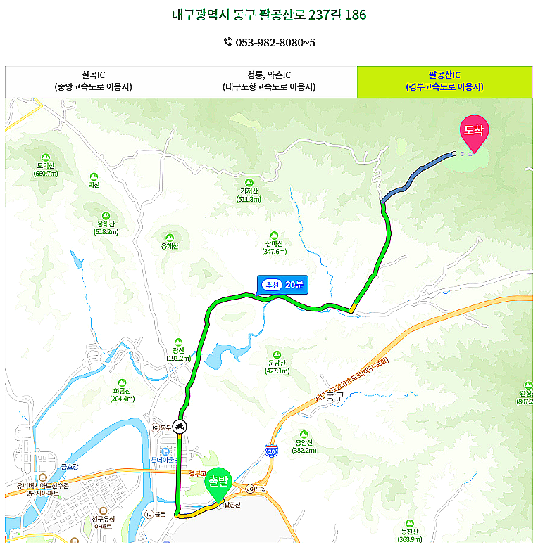 팔공cc는 팔공산IC에서 약 20분 거리에