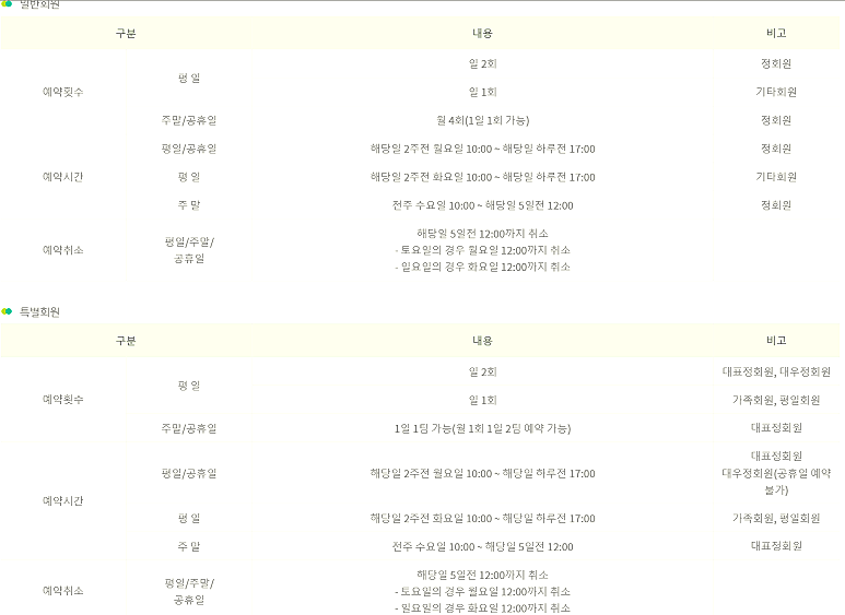 정회원 및 지정회원 동반자 할인(주중4회/주말2회 가능)