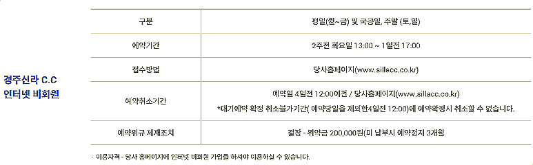 경주신라cc의 회원으로 입회하실시 주중예약은