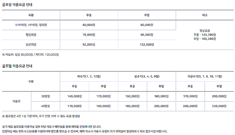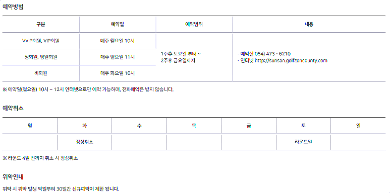 선산cc 이용요금 및 예약안내