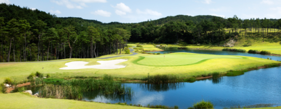 코스로 조성된 베이사이드cc는 소나무숲과 협곡, 호수를