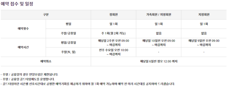 가족회원/지정회원 주중부킹권 부여