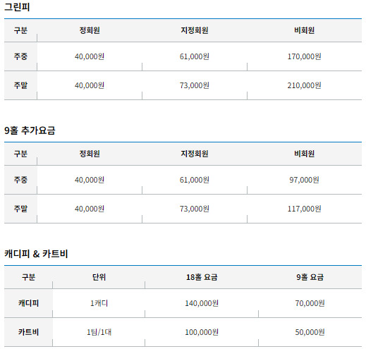 그린피가 저렴하게 책정되며 개인, 법인 모두 활용하기 좋습니다.