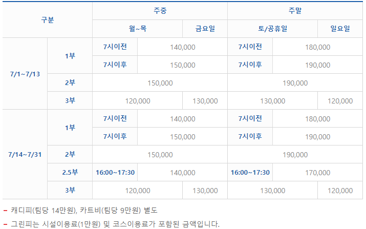 정회원/지정회원 동반자3 그린피